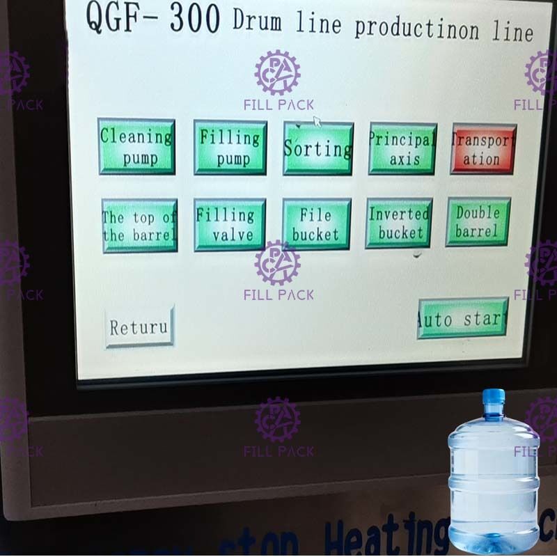 بعد إعداد مصنع تعبئة مياه الجالون جيدًا، أدخل عبر أنبوب المياه، وأنبوب التصريف والطاقة، والطاقة الهوائية.