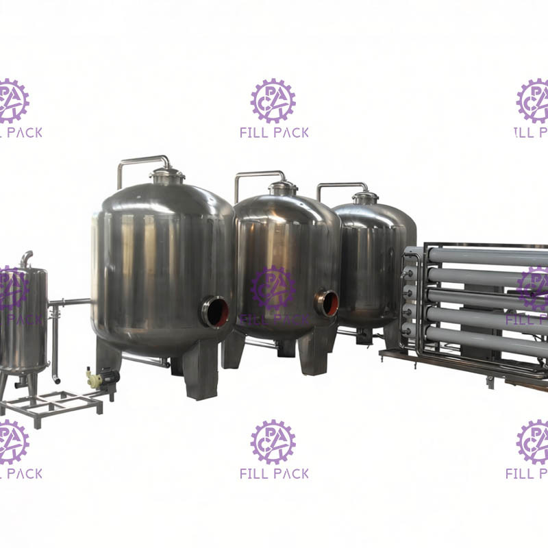 أجهزة معالجة المياه UF تضمنت المرشحات المسبقة ونظام التناضح العكسي ومطهر الأشعة فوق البنفسجية وخزانات تخزين المياه.