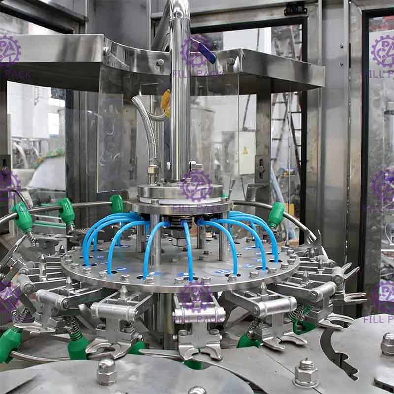 تُستخدم المشابك الزنبركية في عملية غسل الزجاجات. يمكن قلب الزجاجات الفارغة 180 درجة على طول قضيب النقل. هناك مرتان من الغسيل الداخلي والخارجي، وكفاءة غسل الزجاجات عالية. التعبئة بصمام تعبئة للتحكم في مستوى السائل من النوع الزنبركي، بدون تنقيط. من السهل التحكم في مستوى السائل. جميع الإنشاءات مصنوعة من الفولاذ المقاوم للصدأ SUS304، لا توجد زاوية ميتة داخل صمام التعبئة. يستخدم عزم الدوران المغناطيسي للتغطية اللولبية. يمكن تعديل قوة التغطية اللولبية بدون خطوات. يمكن أيضًا تثبيت قوة التغطية اللولبية، ولن تتضرر الأغطية، والتغطية موثوقة. يتم التحكم في الجهاز بأكمله بواسطة PLC مع شاشة تعمل باللمس كواجهة بين الإنسان والآلة. يمكن التحكم في كمية المشروبات في خزان التخزين تلقائيًا. سيتم إيقاف التعبئة والتغطية تلقائيًا عندما لا تكون هناك زجاجة. عندما يتم تضييق الزجاجات بشكل خاطئ أو عندما لا تتوفر الأغطية، يمكن إيقاف تشغيل الجهاز تلقائيًا. يتم استخدام تقنية تغيير التردد لضبط سرعة التشغيل بلا نوم. يمكن عرض سعة الإنتاج رقميًا ويمكن تعديلها بسهولة.
